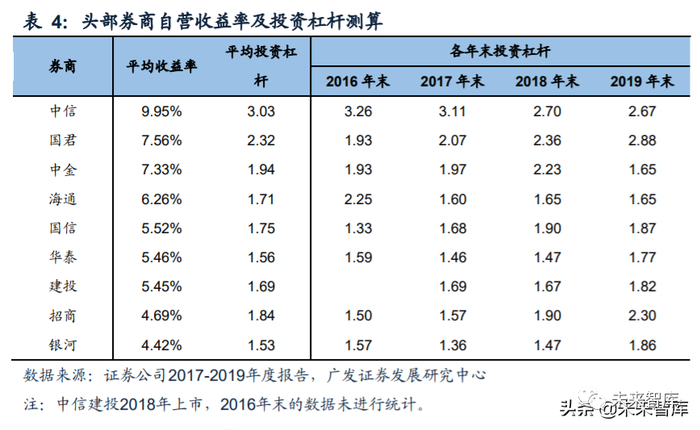(一)投资杠杆方面:自营收益率高的券商普遍高杠杆