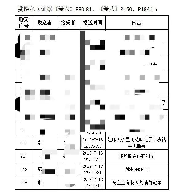 被害人代理律师樊颙在代理意见中提到,郭某牛已于2012年结婚,在追求涵涵时刻意隐瞒了自己已婚的事实。郭某牛的聊天记录显示,分手后,他仍然窥视着涵涵的资金和消费隐私。案发前,郭某牛购买刀具并藏匿于家中,这把刀属野外求生刀。