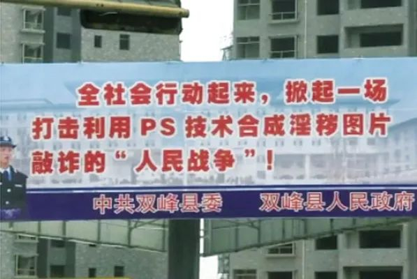 因为PS敲诈,该县在国家打击诈骗的专项行动中被点名。双峰县出名,还是2013年时当地随处张贴的标语。标语是这么写的:“全社会行动起来,掀起一场打击利用PS技术合成淫秽图片敲诈的‘人民战争’!”