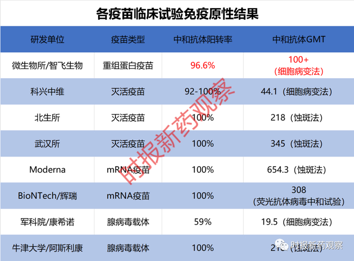 GMT指抗体滴度,数值越大说明疫苗成份免疫原性越强、意味着保护力越高。我们注意到,智飞生物重组蛋白新冠疫苗临床血清测定采用的是细胞病变法。根据此前披露的数据,采用同样方法的科兴中维,GMT值超为44.1,康希诺的GMT值是19.5。北生所和武汉所的灭活新冠疫苗采用的是蚀斑法,GMT值分别是218和345;Moderna和辉瑞BiNTech的mRNA新冠疫苗也是蚀斑法,GMT值分别是645.3和308。由于血清测定方法、参考血清等都不一致,二者之间不具有一定相关性。部分学者的研究表明,蚀斑法值为200的GMT值相当于细胞病变法的23左右。如果这一研究成立, 智飞生物重组蛋白新冠疫苗中和抗体水平领先于全球。这大概是乌兹别克斯坦寻求与智飞生物合作的重要原因。