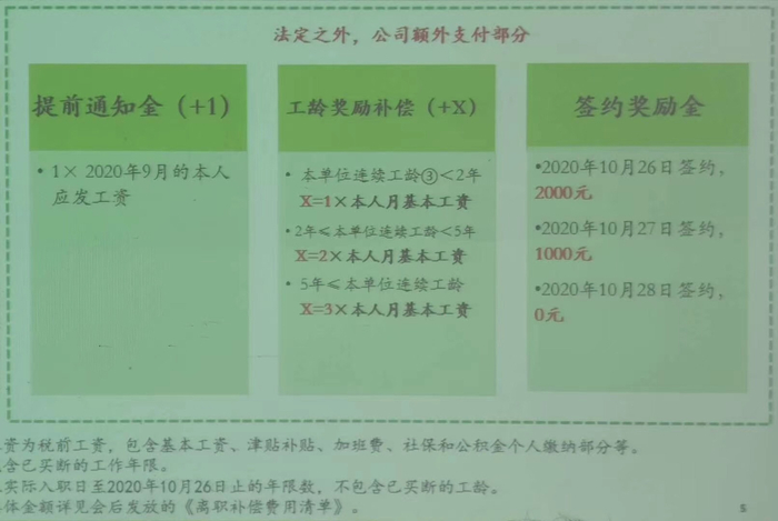 具体补偿方案为:N+1+X+2000,其中N为法定标准补偿金,X代表工龄奖励补偿,2000为10月26日当天签约的奖励金。