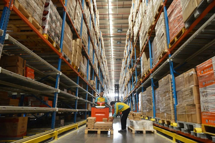 苏宁物流中心,工人积极备货迎接“双十一”的到来。