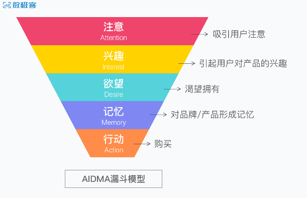 1898年,美国广告学家艾里亚斯·路易斯(E. St. Elmo Lewis)提出了与消费者购买决策有关的AIDMA漏斗模型,将消费者的购买从心理到行为分为5步:引起注意(Attention)、产生兴趣(Interest)、勾起欲望(Desire)、获得记忆(Memory)和产生消费(Action)。这个漏斗模型贯穿了20世纪的企业营销发展,成为许多企业洞察消费者行为的重要工具。