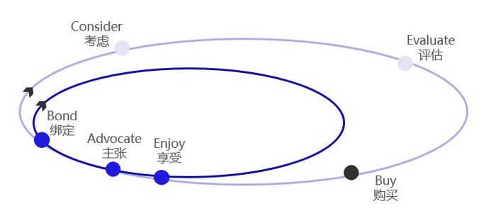 这种“垄断”之所以难突破,与消费者的忠诚度有很大关系。2015年,麦肯锡对原有的CDJ模型进行了升级。最大的变化,就是在原有的外环基础上增加了一个内环,如果品牌和消费者之间的黏性足够强,消费者甚至会跳过购买前的决策流程,直接产生消费。