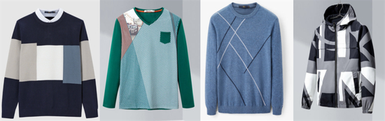 因此都2020年了,不少国内男装品牌的“新款”还是贯穿老中青三代的“假两件拼色毛衫”。