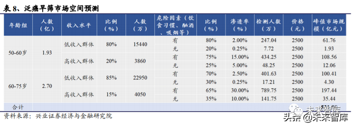 预测 2035 年泛癌种早筛市场到达峰值规模: