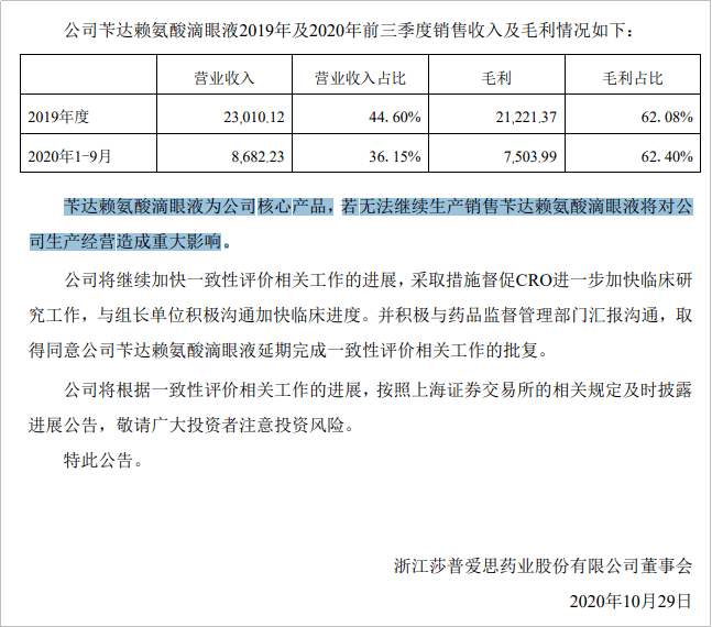 10月末消息,由于药监局要求的某个试验无法按时完成,莎普爱思可能被注销或到期后不予再注册,这将导致该产品不能继续生产销售。