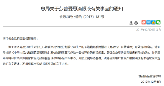 到2017年底,食品药品监督总局下发通知,要求莎普爱思尽快启动临床有效性试验,并于三年内将评价结果报国家食品药品监督管理总局药品审评中心。