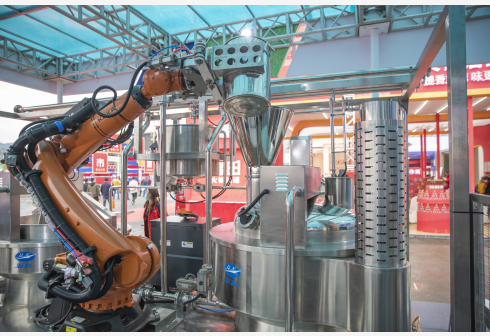 10月17日,在重庆国际博览中心火锅美食文化节现场,一台机器人炒料机在演示如何进行自主炒料。新华社图