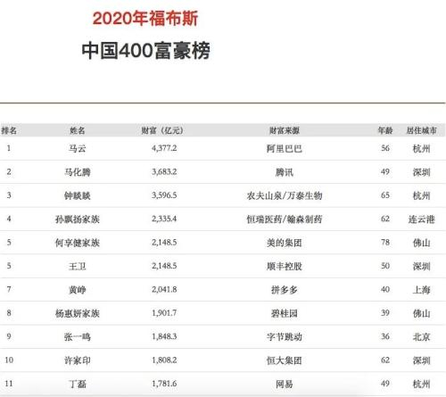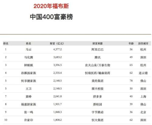 福布斯中国富豪榜揭榜:首富还是马云 身家4377亿