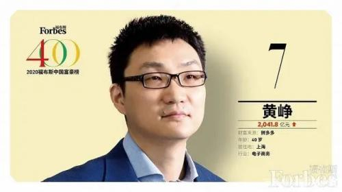 电商网站拼多多董事长黄峥的财富也从212亿美元上升至306亿美元,增幅约44%。