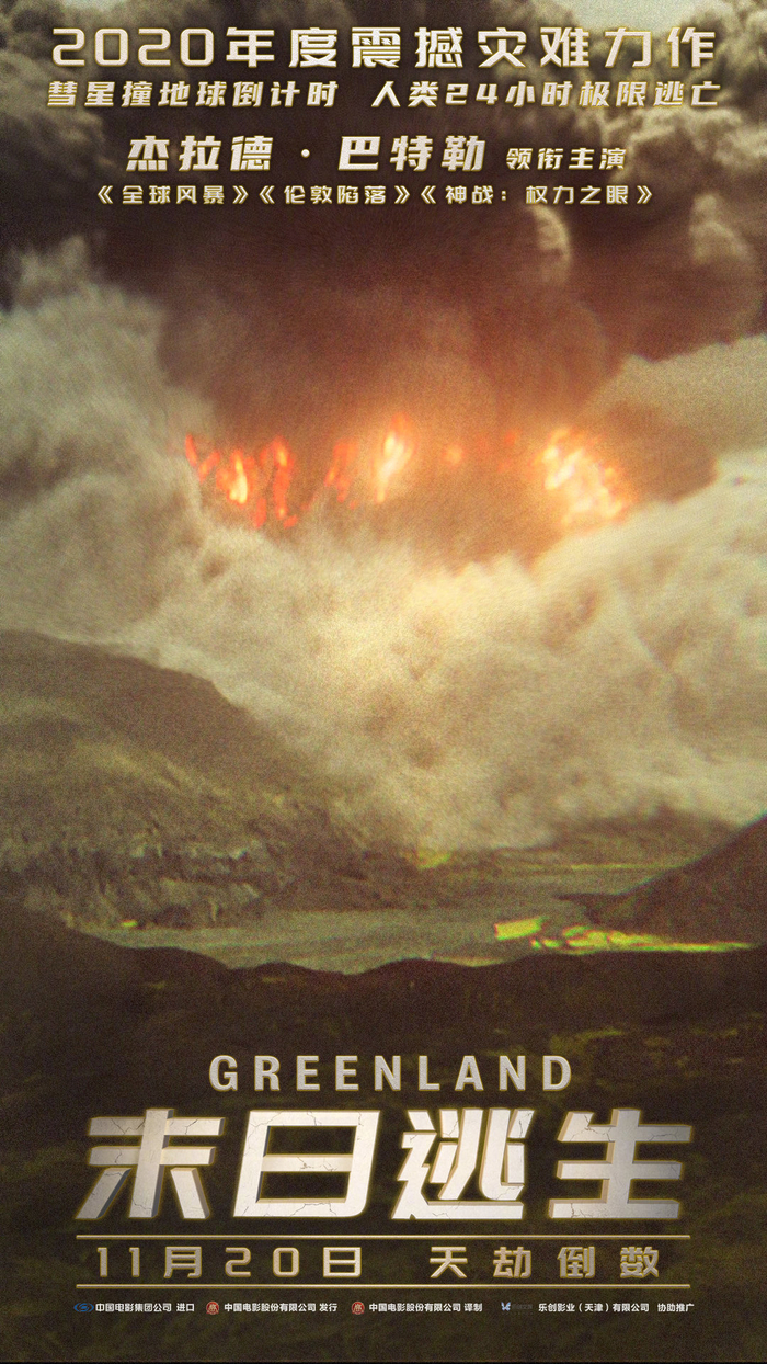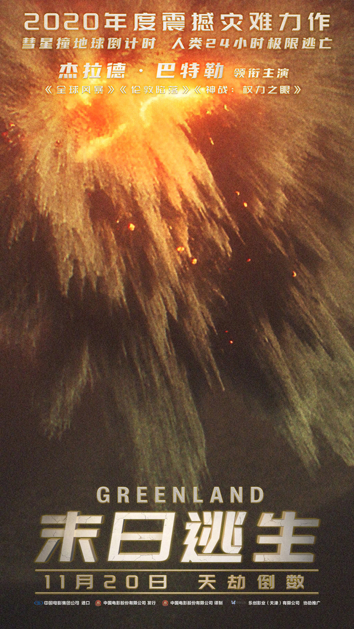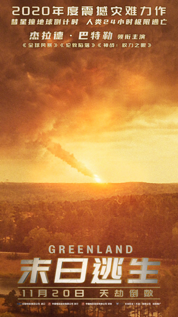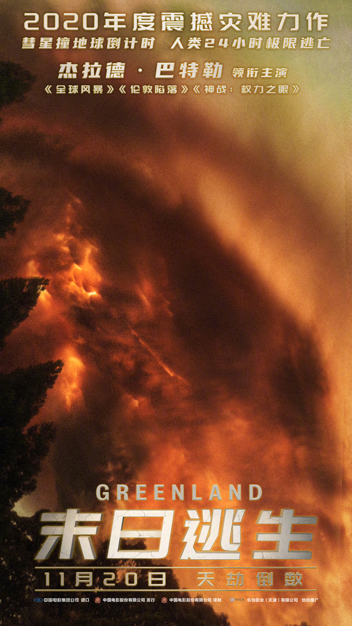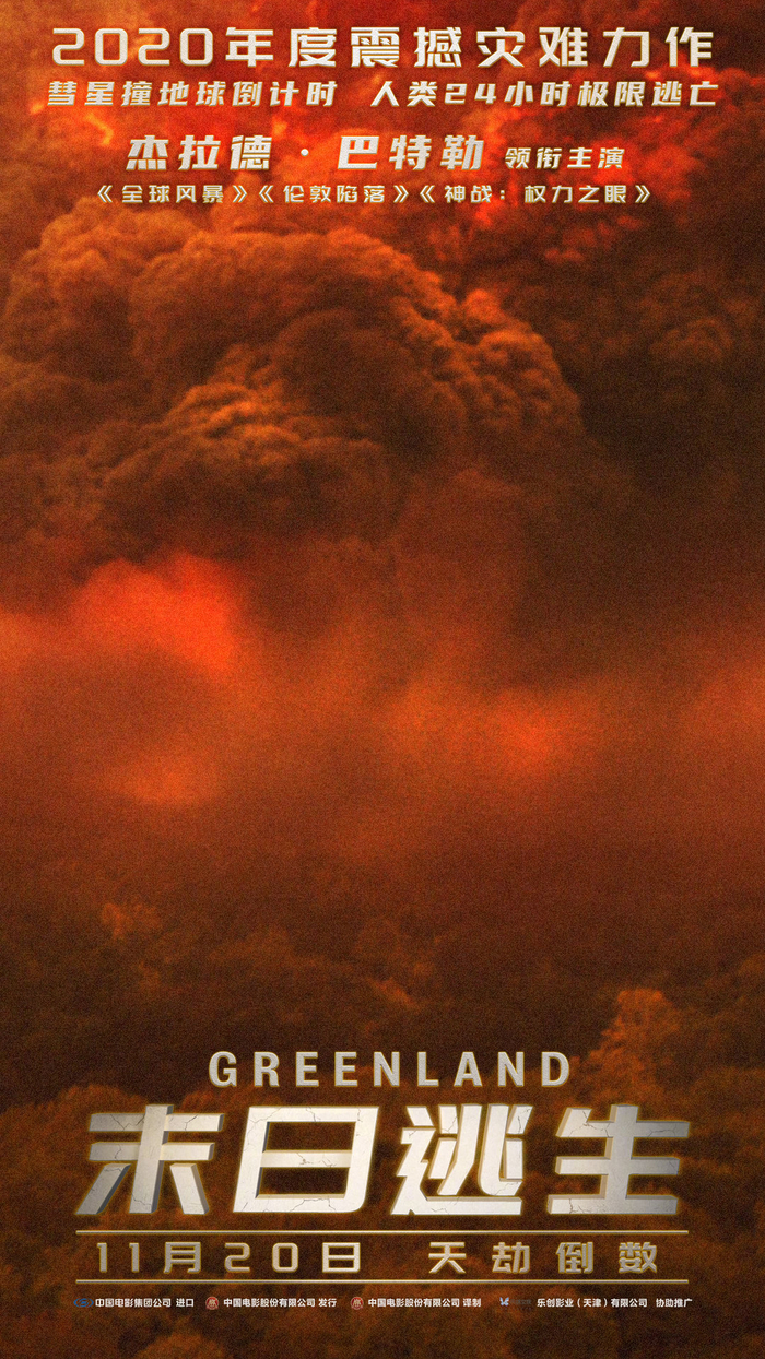 杰拉德·巴特勒(《奥林匹斯的陷落》《伦敦陷落》《斯巴达300勇士》)、莫瑞娜·巴卡琳(《死侍》《哥谭》)主演,好莱坞灾难动作片《末日逃生》发布中文定档预告,宣布定档11月20日在内地上映。《末日逃生》讲述一颗毁灭行星的彗星冲向地球时,一个家庭奋力求生——世界各地的城市都被彗星的碎片夷为平地。