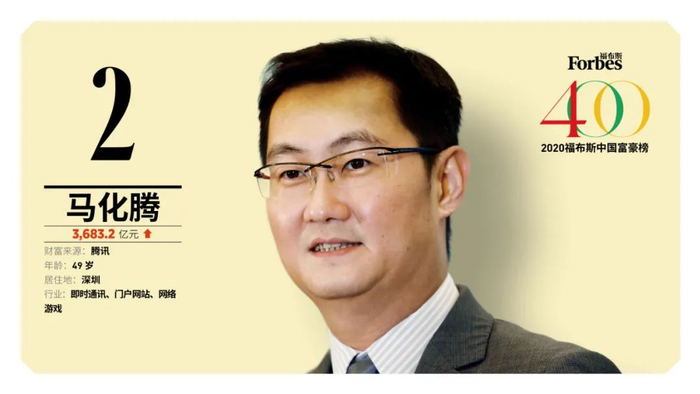 腾讯首席执行官马化腾也是一位中国互联网领军者。今年的榜单上,马化腾的身家达到552亿美元,一年前为381亿美元。新一期福布斯中国富豪榜前10名上榜者的财富都高于一年前。