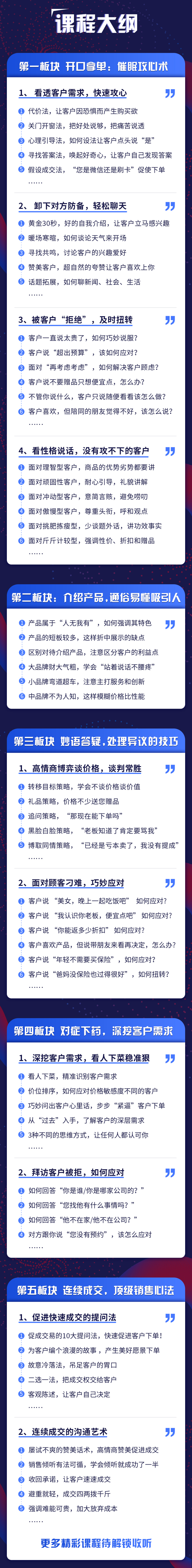 从拿单、产品介绍、拜访、成交等环节,常见的销售沟通难题一网打尽,哪里不会学哪个!