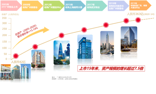 自2005年起至今,总资产已从45亿上升到超360亿,资产规模增长7.5倍,年复合增长超过14%,获得2家国际评级机构穆迪及标普投资级评级,入选7项香港恒生指数,成为亚洲十大上市房地产投资信托基金之一。