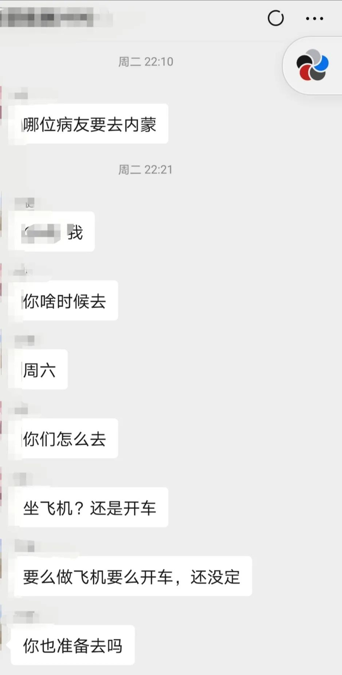 病友在微信群里交流去内蒙看病的经验。