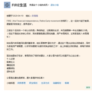 创建于今年4月的“FIRE生活”小组已经吸引了超过17000名“生活家”