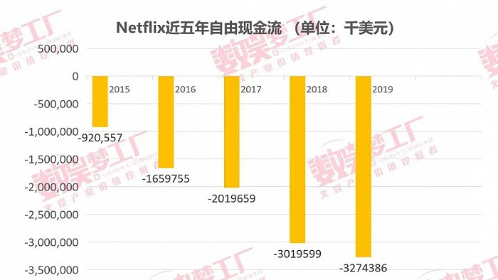 从Netflix近五年的年报可以发现,因重仓加码自制内容,且坚持只依靠会员收费的商业模式,Netflix的现金流缺口持续扩大。