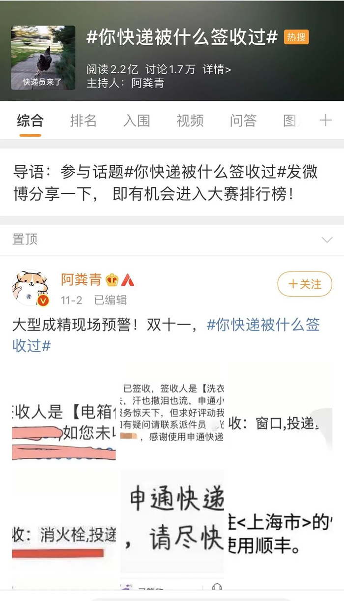 在服务价格下调的情况下,提供的物流服务质量很难保证,出现了拖延派送,或者将包裹被暖气井、电井箱、门口地垫等签收的现象。今年11月2日,微博上关于“你快递被什么签收过”的话题登上热搜,引发了2.2亿的阅读和1.7万的讨论。