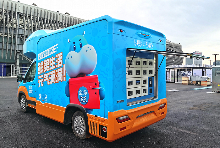盒马公共事务总监季伟介绍道,盒小马餐车每天09:00-18:00为全馆展商及参会嘉宾提供“网订柜取”餐饮服务,用户只需通过手机盒马APP或支付宝选择盒小马“鲜食现取”菜单网上点餐,最快2分钟就可以凭取餐二维码前往盒小马餐车领取热食饮料。
