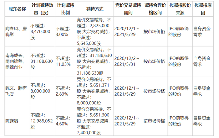 其中,这些股东通过证券交易所集中竞价方式减持的,将于本减持计划披露的减持区间内进行,且任意连续90日内减持总数不超过公司股份总数的1%。根据公告,这些股东披露的减持区间都是今年12月初到明年5月底。而通过大宗交易方式减持的,则是将于本公告披露之日起3个交易日之后的6个月内进行,且任意连续90个自然日内减持股份总数不超过公司股份总数的2%。