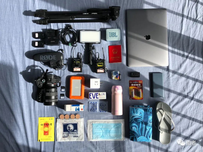 A:相机、指向麦、小蜜蜂、电池、电池充电器、三脚架、2T硬盘、万能充电头、录音笔、人字拖、蓝牙音箱、止痛药、云南白药贴膏。基本上行李箱一半是装设备,一半是装衣服。