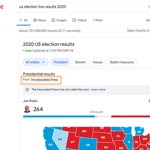不只是谷歌搜索,美国主流新闻媒体,比如全国公共广播电台(NPR)、公共电视网 (PBS)、《纽约时报》《华尔街日报》《华盛顿邮报》,还有YouTube以及世界其他媒体机构,都翘首以盼,等待美联社发布最终的大选结果。