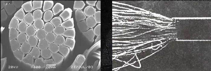 量橙T恤采用了海岛纺丝改性,也就是超细旦纤维。相比之下普通纤线密度为0.55~0.11dtex,而海岛法织造的超细纤维,一般可达0.11~0.011dtex,其线密度仅为普通密度的1/10。