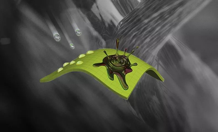 用水泼溅衣物,表面轻微落水,但并没有穿透到衣服内层,几乎是滴水不进的效果。