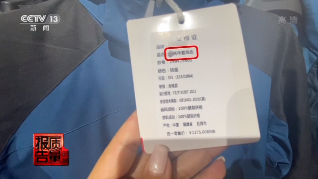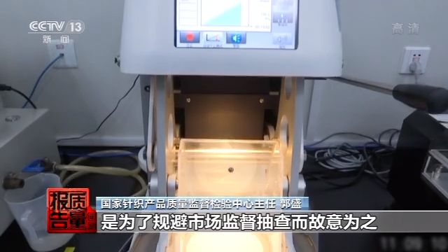 国家针织产品质量监督检验中心主任郭盛:我们认为主要还是为了规避像透湿率、静水压等功能性指标的检测,也不排除一些生产经营企业,是为了规避咱们市场监督抽查而故意为之。