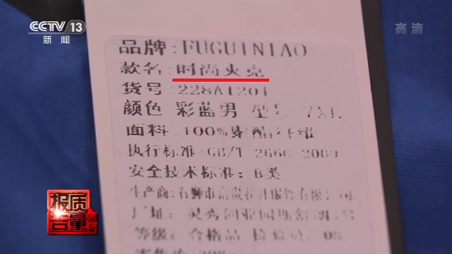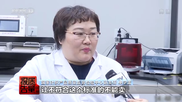 国家针织产品质量监督检验中心副主任单学蕾:像这种现象,首先侵犯的是消费者权益,因为他根本没标这个标准,就是测它也是合格产品,没有按那个标准去标,所以消费者这块肯定是吃亏的。再有对正规的厂家来讲也是一个损害,所以应该去规范这个市场,让不符合标准的不能卖,才能保护真正的商家利益,也能保证消费者买到了货真价实的东西。