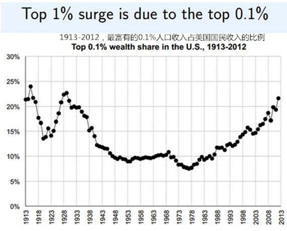 第二个是史无前例的金融泡沫,货币没有底线大宽松,债务大爆炸,低利率与负利率,进一步拉大了阶层间的贫富差距。富人拥有大量的金融资产,庞大的资产负债表,能够充分的攫取金融市场泡沫带来的财富溢价;而依靠劳动力收入的普通民众的实际工资最近十几年几乎没有提高。政府拿着纳税人的钱在金融危机的时候救助问题机构,本身也是对普通民众的剥削。这已经引起了占领华尔街等民众运动。