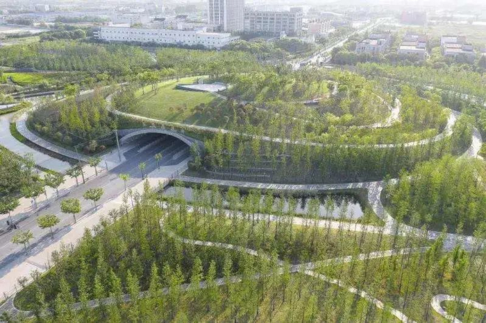之所以成为“网红”,桃浦中央绿地还有一个“杀手锏”:绿地里有上海难得一见的“山”!没错,的确有“山”,只不过是人造山。原来,这片总长1.6公里的大型绿带,通过三个地上或地下隧道横跨了古浪路、常和路、沪嘉高速三条大马路,游客不用过马路就能无障碍穿行绿地。其中,古浪路隧道上方的绿地坡度,由泡沫混凝土、轻质EPS材料和1.5米高的土壤层铺就,形成了视野更好的坡地,也充分考虑到了隧道的核载。登上古浪路隧道上方的小山,整片绿地的景观收入眼底,令人心旷神怡。空气足够好的时候,这里还能极目数十公里,看见陆家嘴的三座高楼。绿地的另外一大亮点,是传说的3D打印桥。这一区域目前尚未对外开放,未来对游客将是一大吸引点。