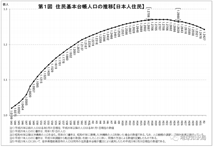 这一升一降之间,日本的总人口就越来越少了(图片:总务省)
