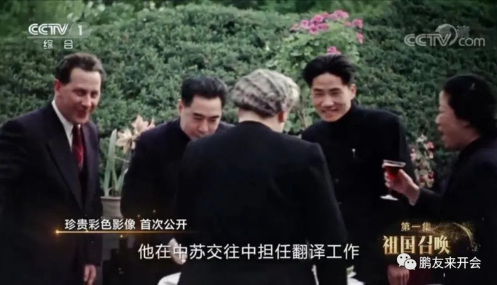 这是毛岸英1949年10月1日,担任俄文翻译,接待苏联文化科学艺术代表团时的录影截图。