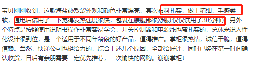 “发热速度很快,裹在腰腹部很舒服”