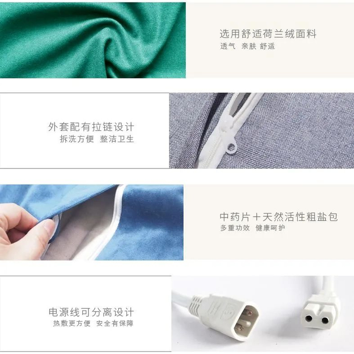 特制盐包热敷,无需繁琐准备,插上电一键调控,随时随地都能够享受理疗SPA。