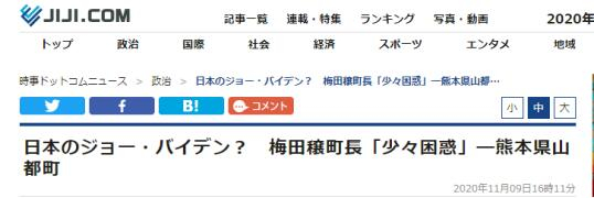 时事通讯社:日本的乔·拜登?熊本县山都町梅田穣町长“有点困惑”