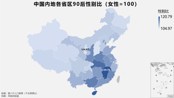 90后男女失衡,并不是处处皆然,也分区域。