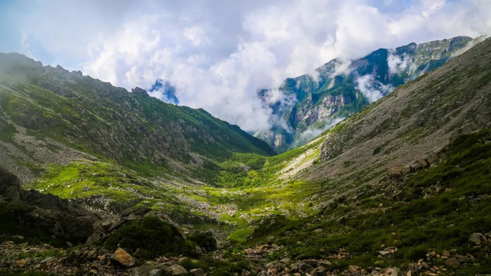 秦岭主体位于陕西南部,而广义上的秦岭,西起甘肃,以迭山与昆仑山脉为界;向东探入河南,分为崤山、熊耳山、伏牛山三支;南部还有一小部分,由陕西延伸至湖北郧县,东西横贯1600多千米,绵亘于华夏腹地。