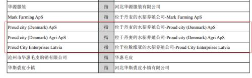 华斯股份称,“丹麦子公司Proud City(Denmark)Agri ApS和ProudCity(Denmark)ApS;Proud City Enterprises Ltd.主要从事水貂养殖”。截至2020年9月30日,上述几家公司的消耗性生物资产为1687.93万元,占公司净资产(未经审计)的0.94%。而这类消耗性生物资产主要为小水貂和种貂。