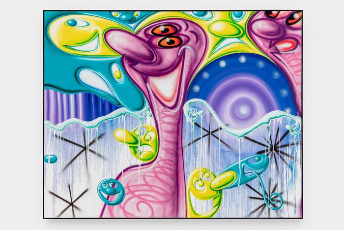 © 肯尼·沙尔夫 KENNY SCHARF,次元 Dimensione, 亚麻布面油画、丙烯、喷漆及哑光铝框 Oil, acrylic and spray paint on linen with powder coated aluminum frame, 121.9 x 152.4 cm, 2020,图片致谢艺术家与阿尔敏·莱希
