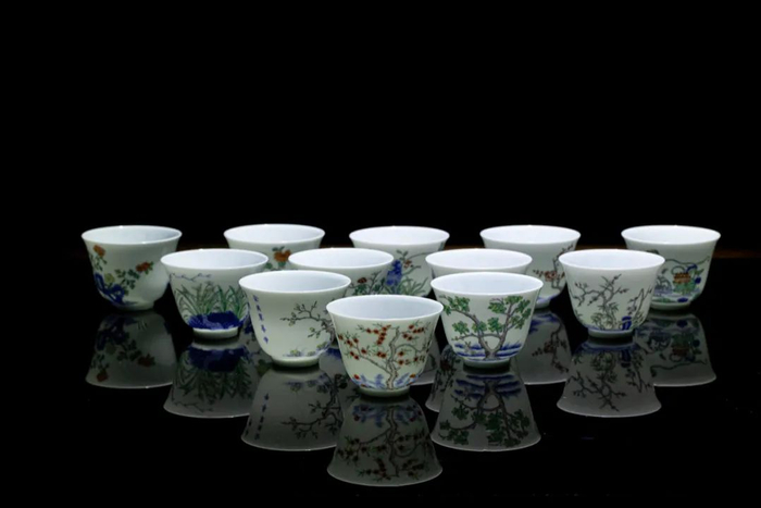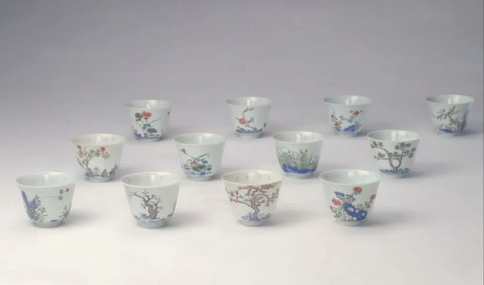 青花五彩十二花神杯,堪称清斗彩“巅峰之作”。