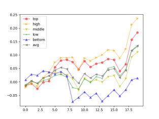 我们对top组和bottom组做显著性检验,结果发现top组与bottom组的历史回测超额收益率序列没有统计学意义上的显著差异;从上图观察单调性来看,我们也能发现,换手率因子对于主动选基的业绩表现不具备非常显著的有效性。