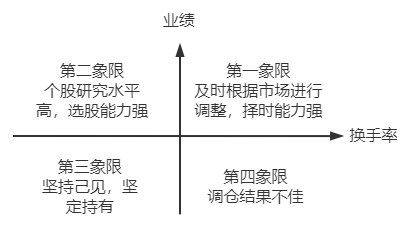 根据基金业绩以及换手率水平的高低,我们可以划分为四个象限。