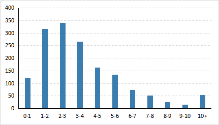 根据2020年8月底披露完成的基金半年报数据,2020年上半年,主动股混型基金的换手率大部分都集中在单边1倍到单边4倍之间,平均换手率水平约3.68倍。换手率超过6倍的基金数量占到主动股混型基金总数的15%左右,属于换手率较高的基金;换手率低于1倍的基金共有120只,占总数的7.6%,这些基金的换手率相对较低。