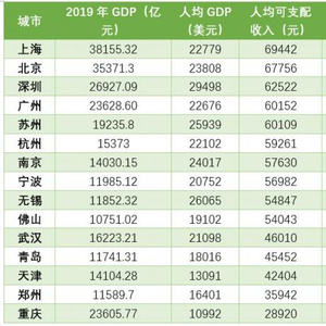 最终的15座城市人均可支配收入排序为:上海、北京、深圳、广州、苏州、杭州、南京、宁波、无锡、佛山、武汉、青岛、天津、郑州和重庆。