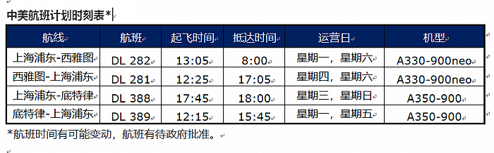 达美航空公司称,从2020年12月3日起,将恢复上海至西雅图、上海至底特律的2趟直飞航班。上海-西雅图将由达美航空最新的宽体客机A330-900neo运营,上海-底特律航线将继续由达美航空国际旗舰客机A350-900运营。