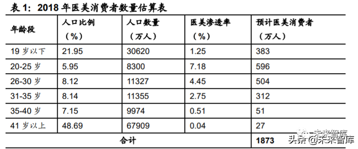 我们通过对各年龄段与人口比例进行测算,2018 年中国医美消费者总量约 1873 万人,进而估算中国医美实际消费者人均消费金额为 7700 元,医美产品消费力 显示较强水平。
