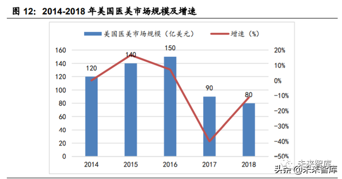 2004-2011 年,美国医美行业也经历了监管不足、“黑医美”频发的行业竞争混 乱期和行业调整期,医美市场规模有大幅下滑。随着以 Realself 为首的美国医 美第三方平台出现,行业信息透明度增加,医美市场增速得以逐渐恢复。目前, 美国已成为全球医美法律最规范、整形项目最丰富、发展最为成熟的国家。
